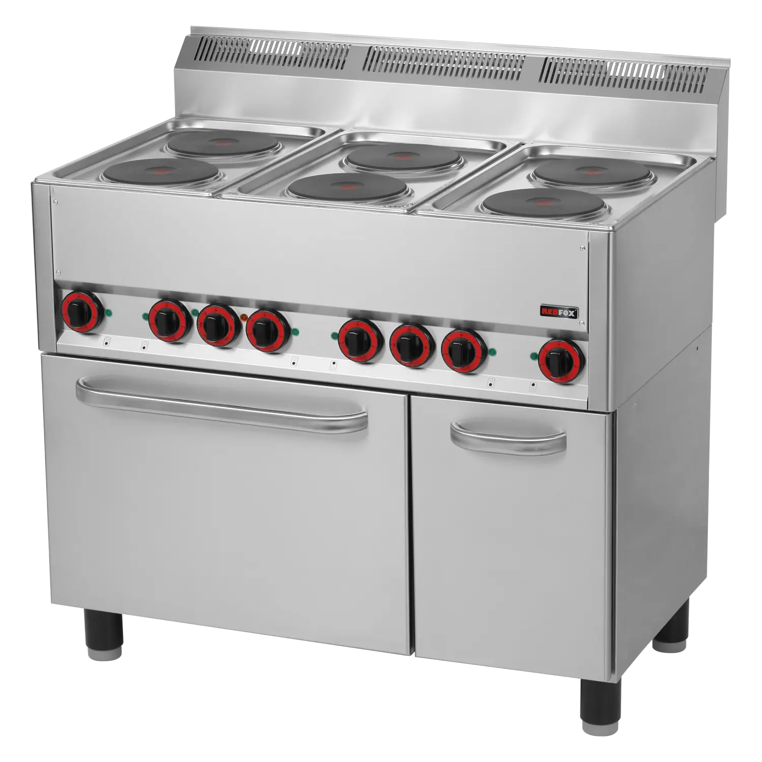 Fourneau électrique avec four à air chaud électrique GN 1/1 – 6x feu 400 V | REDFOX – SPT 90 ELS